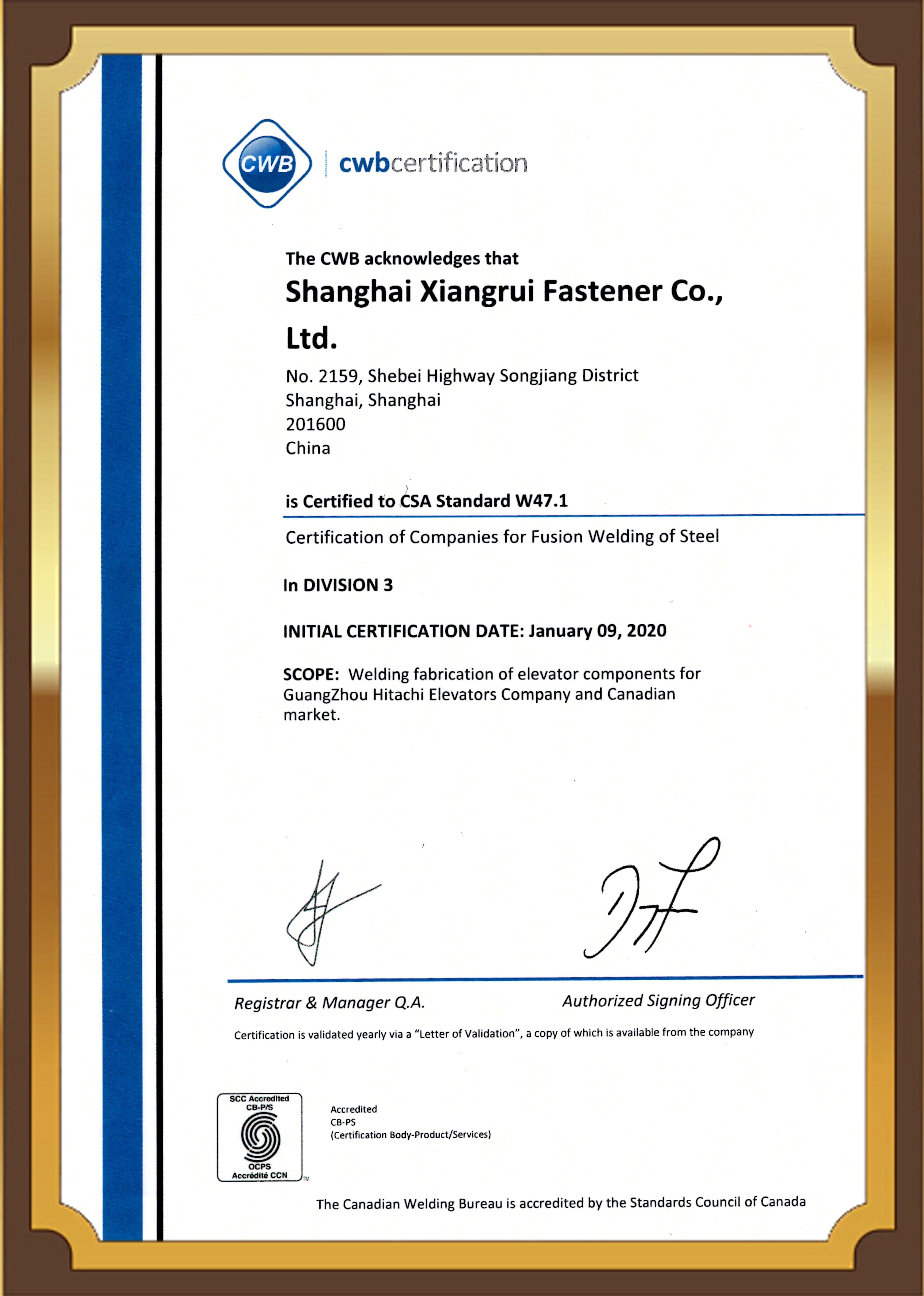 2006年在上海闵行区成立上海翔锐紧固件有限公司。